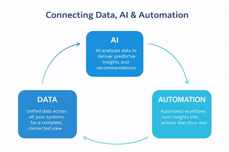 A cross-industry Data, AI & Automation solution that connects enterprise systems, enables real-time insights, and drives autonomous decision-making through intelligent data agents.