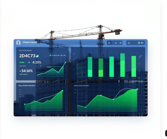 Construction and real estate teams track vital signs: Project Progress, Cost vs. Budget, BOQ vs. Actual, and Sales Bookings.