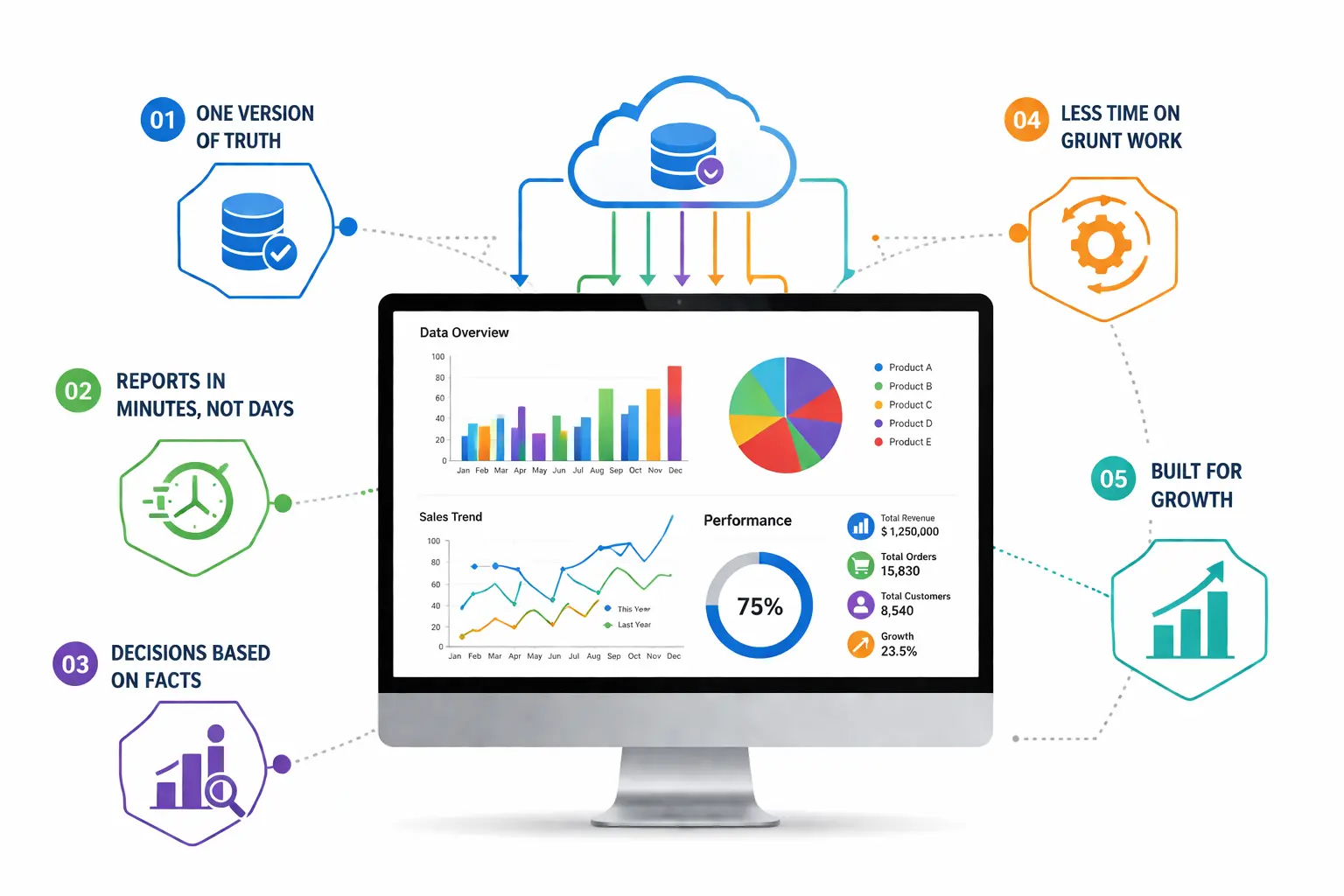 It eliminates conflicting reports, reduces manual data work, and speeds up decision-making. Instead of waiting days for reports or reconciling numbers, your team gets accurate data in minutes.